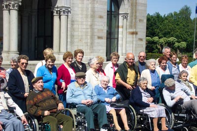 Une partie du groupe, résidants et bénévoles, devant la basilique de Pontmain